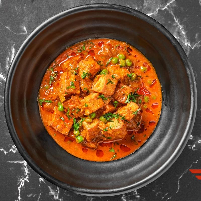 Our version of classic flavorful dish featuring fresh green peas and tender cubes of paneer cooked in a rich, spiced tomato gravy. Garnished with cilantro, this creamy and savory curry is perfect when paired with rice or naan, making it a comforting and delicious vegetarian option.